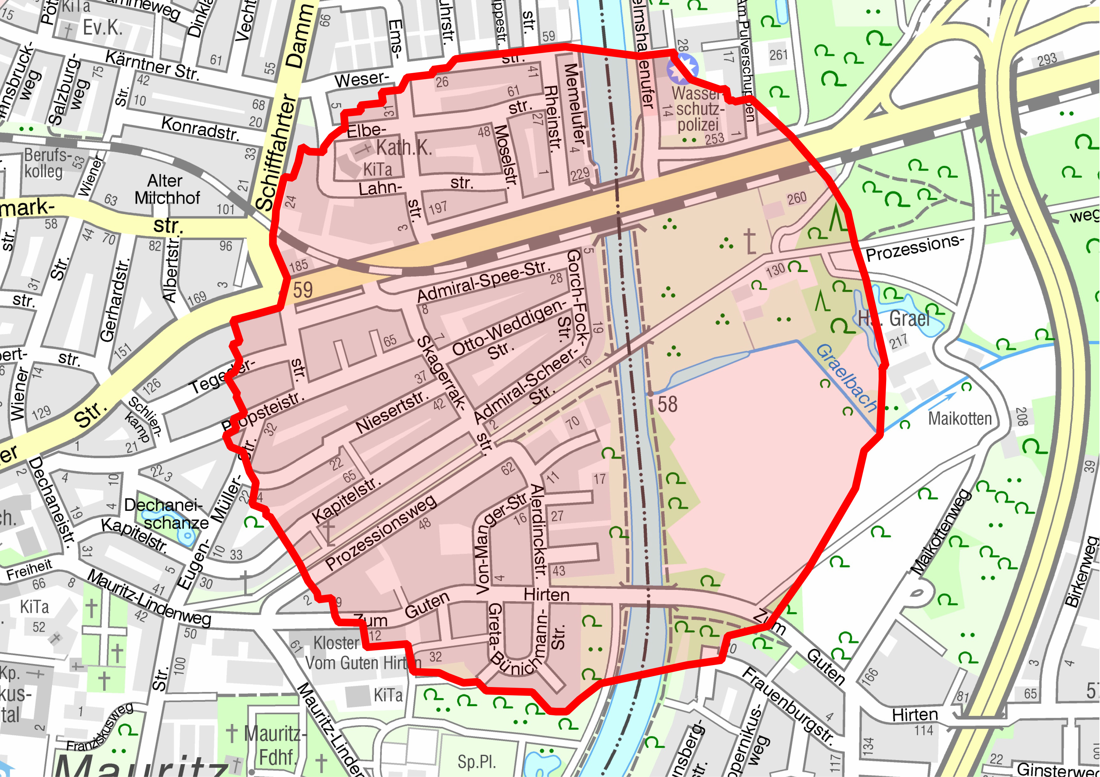 Im Fall einer Evakuierung müssten rund 850 Menschen ihre Wohnungen verlassen. Zudem müssten die Bahnstrecke Münster-Warendorf und der Dortmund-Ems-Kanal sowie die Warendorfer Straße für die Zeit der Entschärfung gesperrt werden. Eine Notbetreuungsstelle würde in diesem Fall im MCC Halle Münsterland eingerichtet.