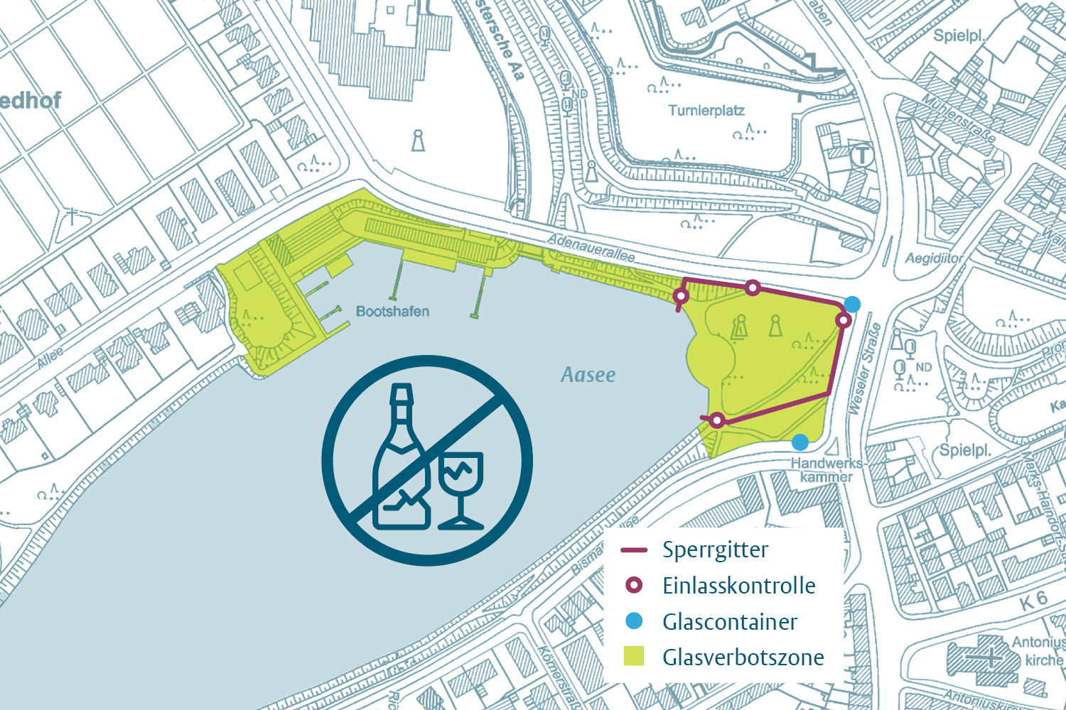 „Wo viele Menschen feiern, bleiben oft zerbrochene Flaschen oder Gläser zurück, die erhebliche Verletzungsgefahren bergen“, sagt Ordnungsdezernent Wolfgang Heuer. „Erfahrungen der vergangenen Jahre zeigen, dass das Glasverbot wirkt und die Sicherheit am Aasee verbessert – für Besucherinnen und Besucher ebenso wie für mitgebrachte Hunde.“