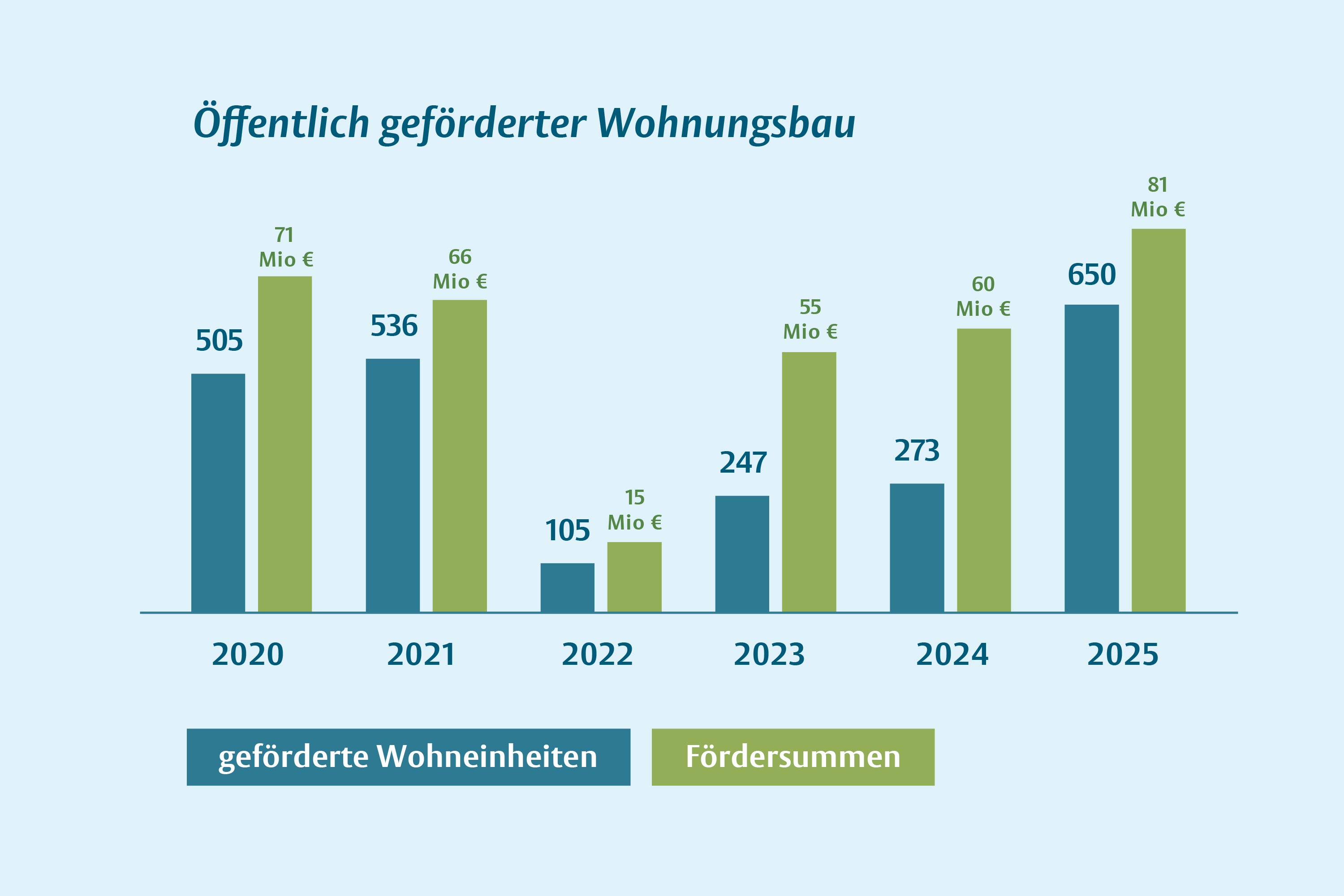 Der starke Anstieg geht insbesondere auf die Förderung von bezahlbarem Wohnraum für junge Menschen zurück. 469 meist kleinere Apartments oder Wohnheimplätze für Auszubildende und Studierende kamen im vergangenen Jahr in die Förderung. 52 Millionen Euro flossen in diesen Bereich.