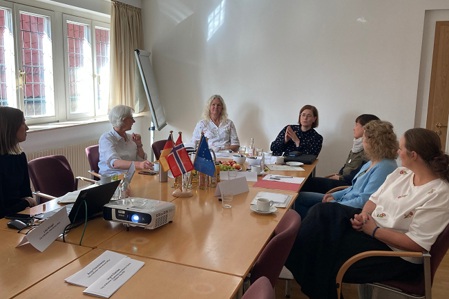 Zwei Kolleginnen aus unserer norwegischen Partnerstadt Kristiansand waren im September 2025 zu Gast in Münster. Ziel des Besuchs war es, die Zusammenarbeit im Bereich Erasmus+ Berufsbildung zu intensivieren und voneinander zu lernen. Im Mittelpunkt stand der Austausch über die verschiedenen Ausbildungssysteme. Ein Fokus lag weiterhin auf der Altenpflege und den Einsatz von Welfare Technology, damit ältere Menschen möglichst lange selbstbestimmt zu Hause leben können.