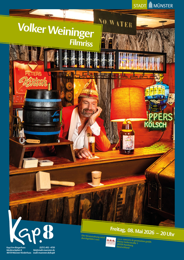 Und wie er so in der Kiste stöbert, fallen ihm plötzlich wieder all die Geschichten und Erlebnisse ein, von denen er viele ohne die Kiste vielleicht vergessen hätte: Erster Schultag, erstes Kölsch, erster Kuss (alles an einem Tag!), Hochzeit, Kinder, die Touren mit dem Verein und natürlich der Hermann, sein Freund mit dem Leben am Intelligenzminimum. Auch in seinem zweiten Solo-Programm kommen bei Volker Weininger die Kölsch und die Gags wieder Schlag auf Schlag. Als Sitzungspräsident nimmt er uns mit auf eine „autobierografische“ Reise durch sein bewegtes Leben. Viele glauben ja, so ein Mann, der war sicher immer schon Präsident. Stimmt aber gar nicht: Bis zu seinem 5. Lebensjahr war er auch nur 2. Vorsitzender! Und das ist nur eine von vielen überraschenden Erkenntnissen, die sich der Sitzungspräsident da kölschselig selber
