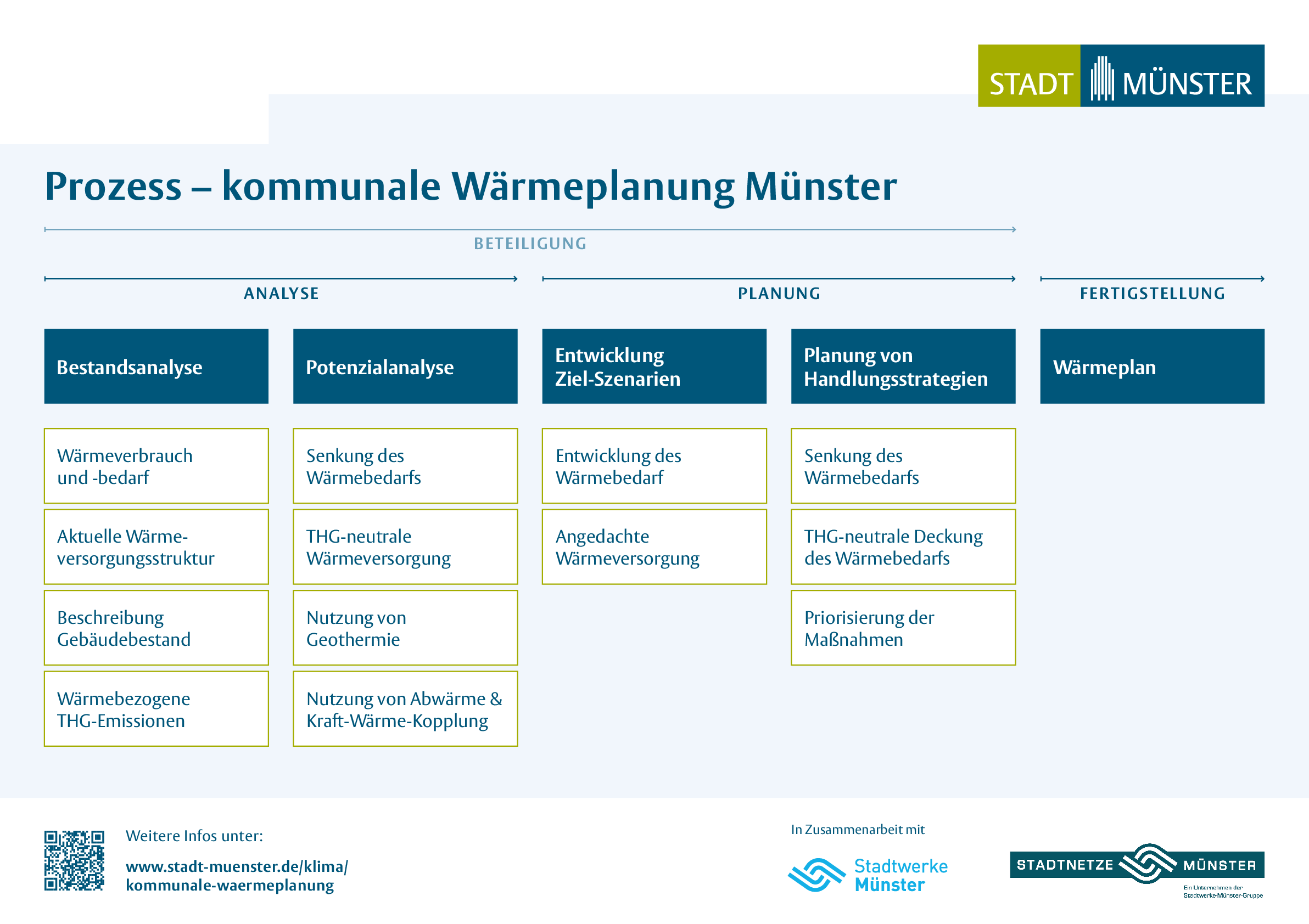 Die kommunale Wärmeplanung der Stadt Münster erfolgt in vier Phasen:
