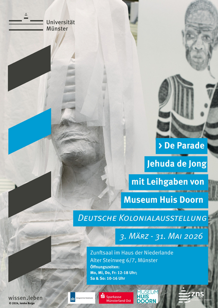 Die Ausstellung „De Parade“ zeigt die künstlerische Vision von Jehuda de Jong, die in ihrer Installation die vielschichtigen Spuren des Kolonialismus sichtbar macht. Ergänzt wird die Ausstellung durch ausgewählte Objekte aus dem Museum Huis Doorn, die historische Einblicke in den deutsch-niederländischen Umgang mit kolonialem Erbe bieten. Gemeinsam schaffen Kunst und historische Objekte einen Raum, in dem die Besucher*innen eingeladen sind, über die koloniale Vergangenheit beider Länder und deren Auswirkungen auf die Gegenwart nachzudenken. Dabei soll betont werden, dass Kolonialismus kein abgeschlossenes Kapitel der Geschichte ist, sondern ein historischer Prozess, dessen Auswirkungen bis in die Gegenwart hineinwirken und unser Denken, Handeln, unsere Sprachen und Kommunikation bis heute beeinflussen.