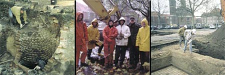 Archäologische Untersuchungen in historischen Stadtkernen werden oft von Rahmenbedingungen bestimmt, die nichts mit fachlich begründeten Entscheidungen zu tun haben. Auf dem Parkplatz Stubengasse mussten die Grabungsschnitte so angelegt werden, dass verschiedene Bäume nicht gefährdet wurden. Die jeweils nicht untersuchten Flächen sollten weiter als Parkraum zur Verfügung stehen und die Fahrtrassen zwischen den Ein- und Ausfahrten des Parkplatzes sicher befahrbar bleiben. Im Jahr 1998 erschwerte extrem schlechtes Wetter die Arbeiten, so dass häufig alle Schnitte unter Wasser standen und nur mit Hilfe von Pumpen wieder begehbar gemacht werden konnten.