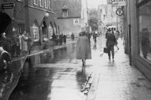 "Unmittelbar nach dem Fliegeralarm um 3 Uhr. Gruppen, die gerade die Luftschutzräume verlassen haben."