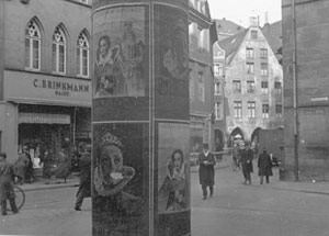 "Auch die Litfaßsäulen haben während des Krieges ein etwas anderes Gesicht bekommen als in Friedenszeiten. Vielfach dienen sie der Propaganda im Kriege, Aufrufen der Parteiorganisationen, dem Theater und den Kinos."