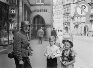 "Einzelne Geschäfte, darunter auch das Möbelgeschäft auf dem Alten Steinweg haben in ihren Schaukästen Plakate ausgehängt auf denen sie als Verkaufsstelle für Totalbeschädigte bezeichnet sind. Andere brauchen gegenwärtig gar nicht versuchen, dort Einkäufe zu tätigen. Auch keine Brautleute, die ihre Möbel einkaufen möchten."