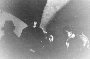"Die Kellersitzungen zum Schutz gegen feindliche haben wieder begonnen, Dies Foto zeigt eine Sitzung in einem der feuchten Keller an der Aegidiistrasse im Kriegswinter 1941/42."