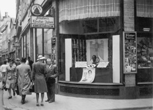 Systemkonforme oder unterstützende Propaganda fand sich anlässlich besonderer Veranstaltungen in den meisten Schaufenstern münsterischer Geschäfte.