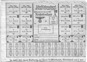 "So sieht die neue Brotkarte für Zone II (Westfalen, Rheinland usw.) aus."
