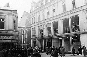 "Die gesperrte Salzstraße. Der Verkehr muß durch die Kleiboltengasse geleitet werden. Alle Scheiben sind zum Teufel."