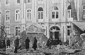 "Die Zerstörungen in der Elisabethstraße. Blick von der Warendorferstraße in die Elisabethstraße."