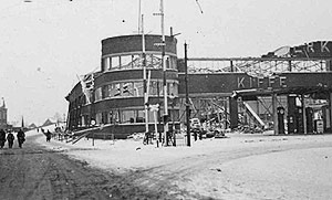 Zerstörte Fabrikhalle des Autohauses Fritz Kiffe