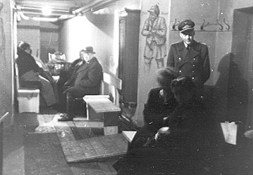 "Auf der Kegelbahn, jetzt Luftschutzkeller des Gesellenhauses um Mitternacht bei Fliegeralarm."
