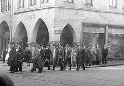 "Reichsminister Dr. Dorpmüller kommt bei seinem Besuch in Münster gerade vom Domplatz, um den Willkommensgruß im Rathaus durch den Oberbürgermeister entgegenzunehmen."
