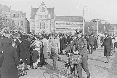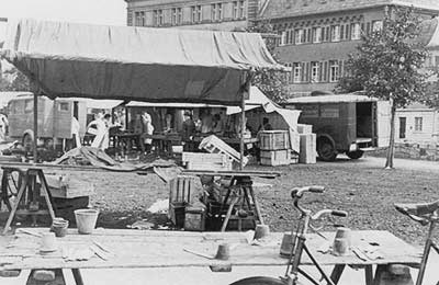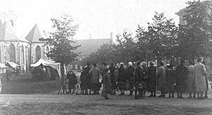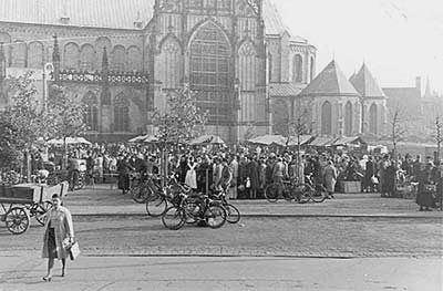 "An den Markttagen sind auch trotz des Regens morgens zwischen 7 und 8 Uhr die Gemüsestände auf dem Domhof dicht umlagert während nach der Post und nach dem Rathaus zu niemand ist, der auf die dortigen Brot-, Käse- und Fleischerstände zueilt."