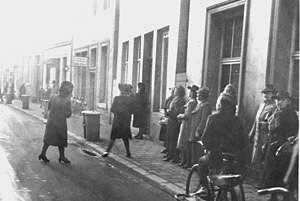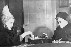"Fast jeden zweiten Abend gibt es Anfang des Jahres für wenigstens eine Stunde Alarm und ein wenig Schießerei. Solange nicht geschossen wird sitzen die Familien mit ihren Kindern daheim in den Mänteln, die Koffer griffbereit in der Nähe, um mit Beginn der Schießerei sofort die nächsten Keller aufzusuchen. Die Kinder müssen während dieser Wartezeit Schularbeiten machen. Lieber spielen sie Mühle, Dame oder Schach, wie die beiden Kinder aus dem Aegidiiviertel."