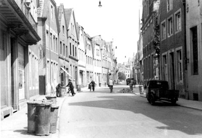 Die menschenleere Aegidiistraße während eines Fliegeralarms
