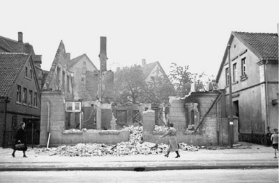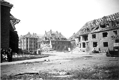 Blick auf vollständig zerstörte Gebäude am Bispinghof