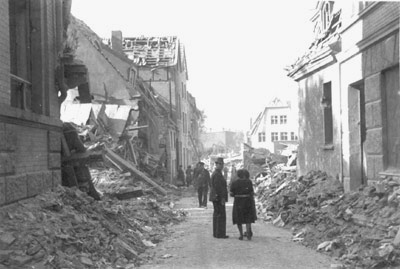 "Blick von der Grünen Gasse auf die Aegidiistraße. So hoch liegen zu beiden Seiten die Schuttberge."