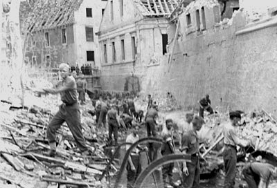 Seit 1935 war der halbjährige Einsatz im Reichsarbeitsdienst für männliche Jugendliche zwischen 18 und 25 Jahren verpflichtend. Im Verlauf des Krieges beteiligte sich der Reichsarbeitsdienst auch an der Trümmerräumung.