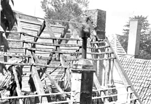 "Der ganze Stadtbezirk ist vom Hochbauamt aufgeteilt, in denen je ein Angestellter der Stadt die Wiederaufbauarbeiten zu überwachen hat. Der blonde Mann mit dem Fahrrad ist der Stadtbeauftragte zur Überwachung des Handwerkereinsatzes in der Altstadt. An den Latten erkennt man, dass das Dachdeckerkommando am heutigen 15.7.1943 vom Bispinghof her bis zur Aegidiistrasse Nr. 62 gelangt ist."