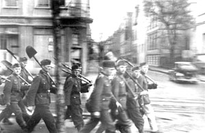 Brandbekämpfung und Trümmerräumung durch den Sicherheitshilfsdienst und ein Militärkommando