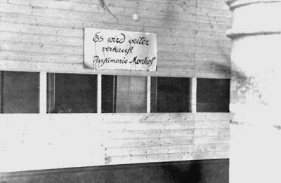 "Gerade an den starken Einsatz der Handwerker und der Kaufleute muß ich denken, als ich wenige Schritte weiter das neue Schaufenster der Firma Monhof sehe und daran folgenden Anschlag: Es wird weiter verkauft, Parfümerie Monhof. - Fast in allen mittleren Schadenfällen haben die fleißigen Münsteraner ihr Geschäft schon wieder in Betrieb gesetzt und keine Lauferei und keine Schwierigkeit gescheut, um dies Ziel zu erreichen."