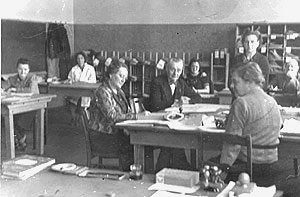 Mitarbeiterinnen und Mitarbeiter der städtischen Feststellungsbehörde. Bombengeschädigte wandten sich an dieses Amt, um ihre Schäden anzuzeigen. Der Bedarf an Mitarbeitern wuchs ständig.