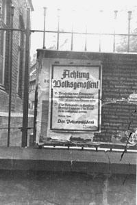 "In den Pfingsttagen vom 12. bis 14. Juni sieht man auch ein Plakat angeschlagen, das die Volksgenossen, deren Arbeitsstätten zerstört sind, auffordert, sich beim Arbeitsamt zu melden, und das den nichtbombengeschädigten Volksgenossen verbietet, nachts das Stadtgebiet zu verlassen. Der Aufruf ist aber an den weiteren Tagen überall entfernt worden."