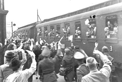"Wieder rollt ein Evakuierungszug aus Münster heraus und die Zurückbleibenden wünschen einander unter frohem Winken, daß sie sich alle gesund nach einem halben Jahr wiedersehen möchten."