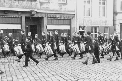 Anlässlich des 10. Jahrestages der nationalsozialistischen Machtübernahme veranstaltet die Hitlerjugend einen Aufmarsch am Ludgeriplatz.