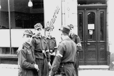 "Die Luftwaffenhelfer des Paulinums treffen sich jeden Morgen an dieser Stelle, bevor sie zum Unterricht gehen. Heute gilt es der Teilnahme an der Trauerfeier im Schloßgarten."