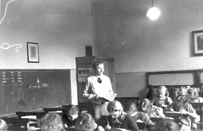 "An diesem Bild der Klasse der Neunjährigen in der Schule auf dem alten Steinweg sieht man, daß die Hälfte der Schülerinnen schon in der Klasse fehlt, weil sie schon Schulen im Münsterland besuchen."