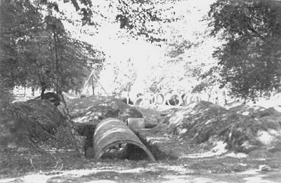 "Am Eingang der Wolbeckerstraße werden vor dem Eisenbahngebäude große Zementrohre in die Erde hineingebracht, die zur Herrichtung von Luftschutzbunkern dienen."