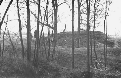 "Ein halbfertiger Splittergraben in der Aegidiipromenade. Nur noch wenige Münsteraner fühlen sich in den Splittergräben sicher, weil mehrere von ihnen den Bomben nachgegeben haben."