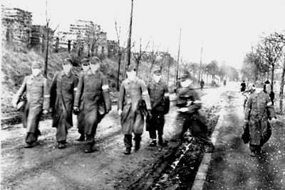 "Still und friedlich ist es am Neujahrsmorgen in den Straßen und in Münsters Promenaden. Sie sind menschenleer. Aber die Flakstände über den Dächern zeigen, daß Münster auch für 1943 auf der Hut ist. Neben dem Generalkommando erkennt man den hohen Flakturm, den man nur an solch einem einsamen Feiertagmorgen fotografieren kann ohne angehalten zu werden."