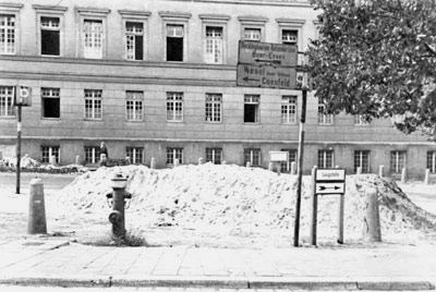 "Auf dem Aegidiikasernenplatz und an vielen anderen Stellen in der Stadt sind größere Sandhaufen von der Partei zu Luftschutzzwecken angefahren als bisher. Auf allen Sandhaufen steht ein Schild, daß der Mißbrauch bestraft wird."