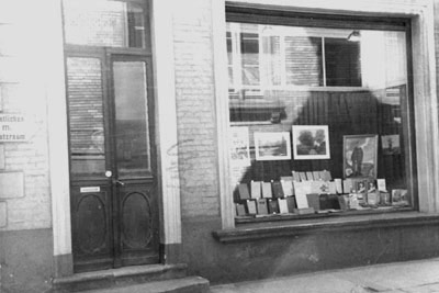 Das Bild zeigt die übliche Gestaltung von Schaufenstern anlässlich des Geburtstages von Adolf Hitler.