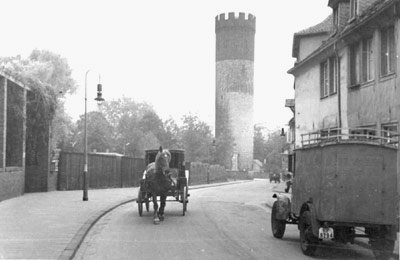 Fuhrwerk in der Münzstraße - Kraftfahrzeuge waren schon zu Beginn des Krieges im großen Umfang für den Kriegseinsatz eingezogen worden.