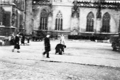 "Regelmäßig am Schluß des Marktes kann man beobachten, daß ältere Frauen auf dem Gelände des Domplatzes sich die liegen gebliebenen Salatblätter und andere Gemüsereste aufsammeln. Hier habe ich eine Frau gerade beim Aufsammeln im Foto festhalten können."