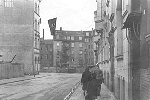 "Zum Heldengedenktag möchte das aus einem K.L.V.-Lager für 2 Monate beurlaubte kleine Mädchen doch zu gern einmal die beflaggte Stadt sehen und auch die heimatlichen Straßen wieder aufsuchen. Sie ist ganz überrascht, daß ihr in 20 bis 30 Straßen nur eine einzige Flagge begegnet. Sie weht in der Herwarthstrasse."