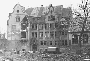 "Die Schulen waren im April 1945 alle geschlossen worden. Es mag sein, dass im Herbst 1945 einige Schulen wieder eröffnet werden konnten, soweit die Schulgebäude erhalten geblieben waren. Natürlich wurden diese Gebäude von mehreren Schulsystemen vormittags und nachmittags genutzt."