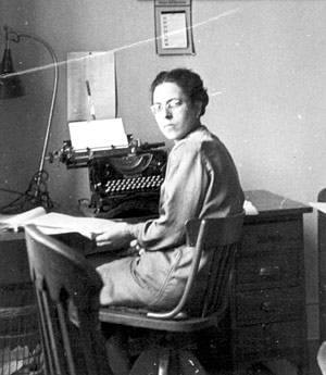 Mitarbeiterin von Dr. Franz Wiemers bei der Abschrift von Chroniknotizen, Juni 1943.