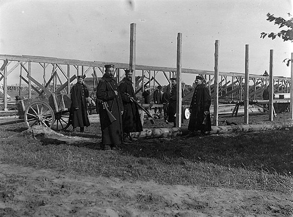 'Das Gefangenlager auf der Rennbahn ist in den letzten Tagen von etwa 2.000 Gefangenen aus dem Hause Spital bezogen worden. Außerdem ist ein Teil der Gefangenen von Spital in die neue Infanteriekaserne an der Kinderhauser Landstraße verlegt worden. Dieser Kasernenneubau ist notdürftig zu Ende geführt; vorläufig sind dort 3000 Gefangene untergebracht.'