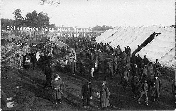 In Münster entsteht das größte Kriegsgefangenenlager Nordwestdeutschlands. Insgesamt leben von 1914 bis 1918 etwa 90.000 Kriegsgefangene aus Frankreich, England, Russland, Belgien, Italien, Portugal und Serbien in der Stadt. Für die Kriegsgefangenen werden drei Lager eingerichtet: Lager I: Haus Spital, Lager II: Rennbahn an der Hammer Straße und Lager III: Rohbau der Infanteriekaserne an der Kinderhauser Landstraße.