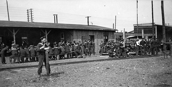 'Seit Montag früh rollen in ununterbrochener Folge die Truppentransporte durch unseren Bahnhof. Nach Westen, gen Frankreich und Belgien fahren die fertig eingekleideten Soldaten, die Munitionszüge, die Wagen mit Artillerie, Pferden, Pünten und anderem Kriegsgerät, nach Norden die Matrosen und Seesoldaten und lange Züge mit Bunkerkohlen und Koks. Alle Soldaten sind von hellster Begeisterung erfüllt, singen Lieder und brennen voller Mut und Kampfesfreude.'