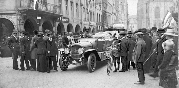 'Eine erfolgreiche Anregung zur Liebestätigkeit bietet seit einigen Tagen eine vor dem Sentenzbogen aufgestellte, mit dem Roten Kreuz versehene große Trommel, durch deren Einschnitt Zigarren und Zigaretten, Schokolade, Ansichtskarten, Pfeifen und Geldstücke wandern.'