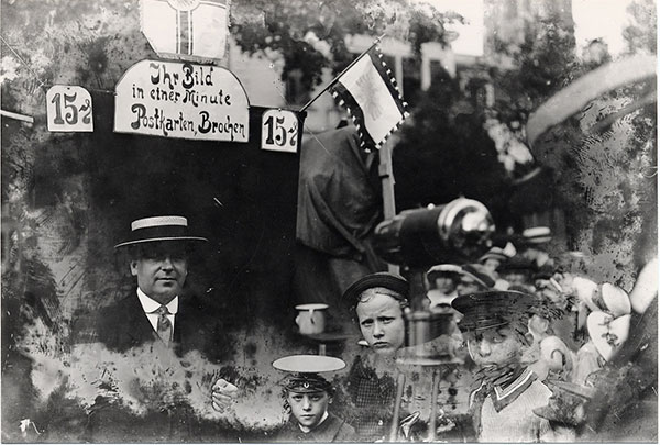 'Auch der Send, der bei schönstem Herbstwetter auf dem Domplatz begann, stand unter dem Zeichen des Krieges. Das Treiben war nicht so lebhaft wie sonst im Frieden. Karussells und Schießbuden waren wenig vorhanden. Beim ,Billigen Büchermann’ konnte man alles kaufen, was man über den Krieg und seine vielgestalteten technischen Einrichtungen wissen wollte. Außer Wohlfahrtlosen für die Kriegerfürsorge wurden Soldatenlieder, Feldpostkarten und nicht zuletzt der Schund der Kriegsansichtspostkarten feilgeboten.'