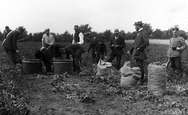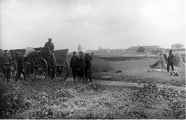 'Bauplätze und ähnliche Brachflächen im Stadtgebiet werden zur Gewinnung von Gartenland kultiviert. Das Generalkommando stellt zur Unterstützung der kleinen Leute Kriegsgefangene für die ersten, schweren Arbeiten unentgeltlich zur Verfügung.'
